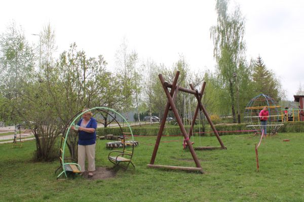 11.maijā PII "Brīnumdārzs" darbinieki un daļa vecāku tikās, lai labiekārtotu un atjaunotu rotaļlaukumus.